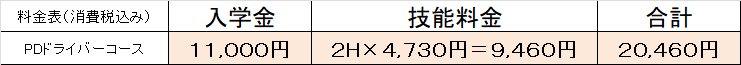 教習料金欄をご覧下さい。