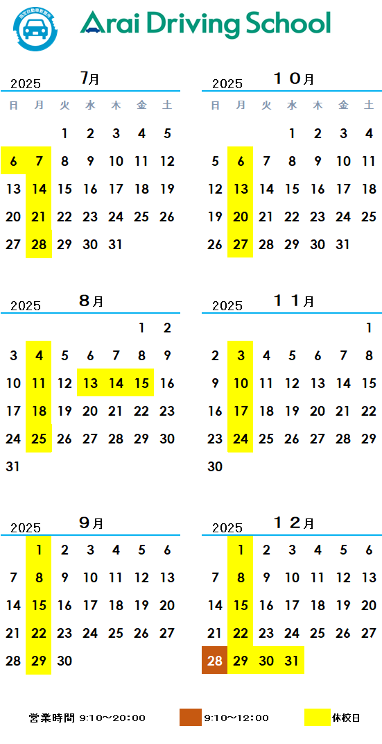 ただし、繁忙期(新規免許取得の方で混雑する時期)にはお断りする場合もございます。