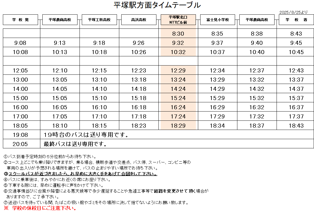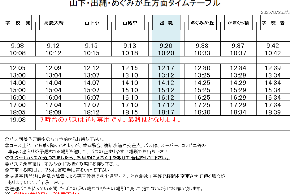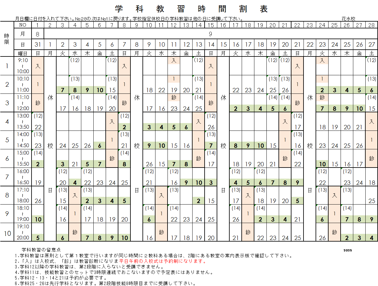 9.教習中、時間割表等はしまってください。居眠り、私語など規律を乱す方は退室して頂きます。